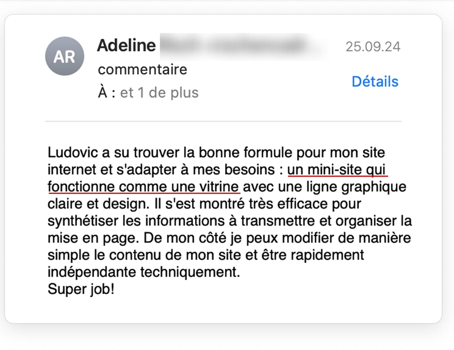 Je te montre aussi à quoi ça ressemble concrètement, avec des exemples réels de mini-sites réalisés pour mes clients.