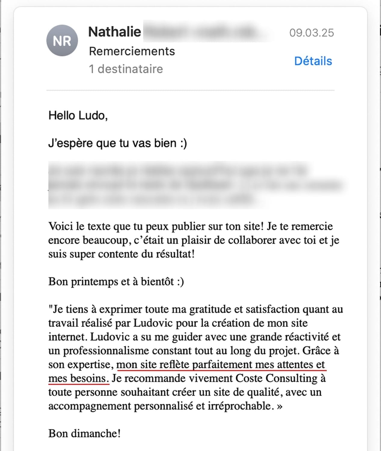 Tu peux me contacter pour un suivi personnalisé, aller plus loin, ou clarifier ton positionnement avant de créer ton site.